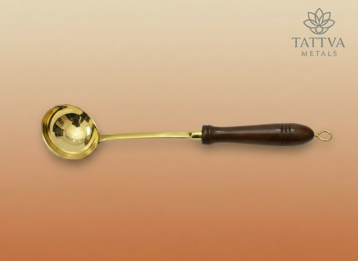 Bring traditional elegance to your kitchen with this beautifully crafted Brass Ladle, designed for everyday cooking and serving. Made from high-quality brass and paired with a sturdy wooden handle, it ensures durability, heat resistance, and a comfortable grip.