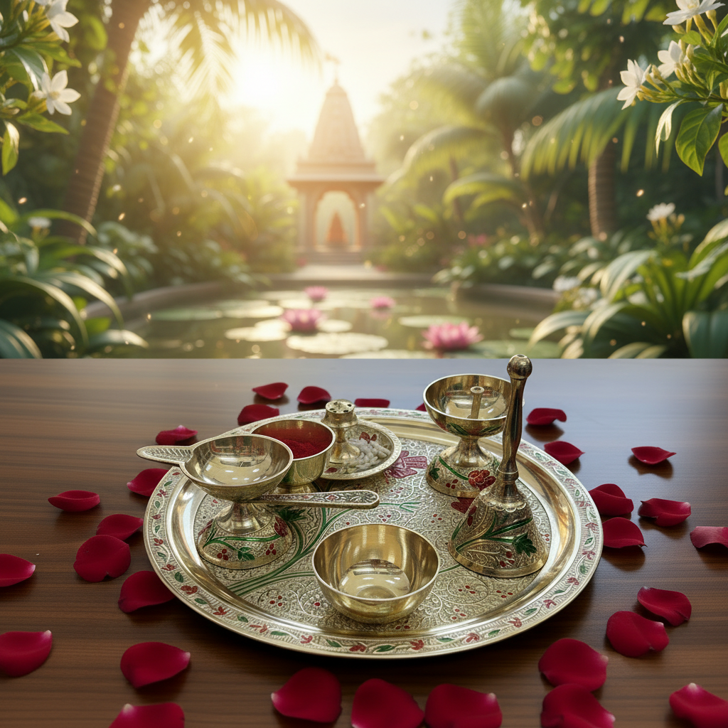 #BrassPoojaThali #MeenakariArt #PoojaGiftSet #IndianRituals #HandcraftedDecor #MeenaWork #HomeMandir #SpiritualGifts #DiwaliGifting #TraditionalArtistry #FestiveDecor #BrassDecor #AuspiciousGifts #PoojaEssentials