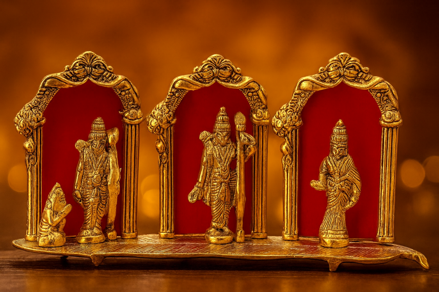 #RamDarbar #BrassIdolSet #LordRama #GoddessSita #LordHanuman #RamLakshman #PoojaEssential #SpiritualDecor #Dharma #MandirDecor #TripleArch #GoldToneFinish #HinduDeities #DevotionalArt #BrassStatue